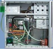 Тем не менее, как уже говорилось, несмотря на всю потенциальную (да и демонстрируемую) мощность такого подхода, применяется он не так уж и часто. В чем-то такая позиция обоснована, поскольку, все же, вода и чипы - понятия не совместимые, так что любое использование жидкостных систем охлаждения для производителей PC является достаточно хлопотным занятием. Необходимо тщательнейшим образом отслеживать все вопросы, связанные с герметичностью, появлением конденсата, и т.д. Добавим сюда довольно большой занимаемый объем в корпусе PC и достаточно высокую стоимость, и мы поймем, почему этот метод охлаждения так и не получил до сих пор массового признания. Впрочем, подождем еще несколько лет, пока температура чипов поднимется до той точки, когда потребуются новые методы охлаждения.