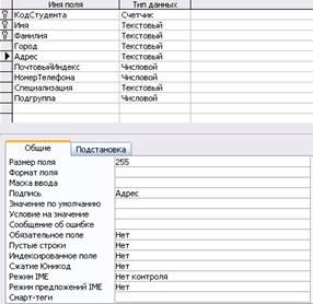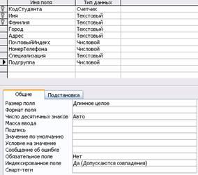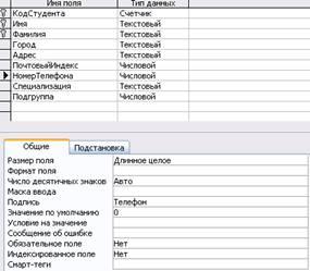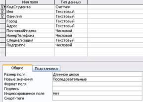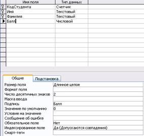 1.2. Свойства полей создаваемых таблиц.