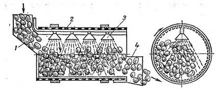 Рис. 3. Схема мытья овощей в барабанной овощемоечной машине
