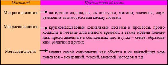 2. Структура социологии по масштабам