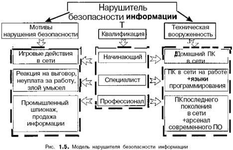 (хакер-профессионал). А если с этими группами сопоставить мотивы нарушения безопасности и техническую оснащенность каждой группы, то можно получить обобщенную модель нарушителя безопасности информации, как это показано на рис. 1.5.