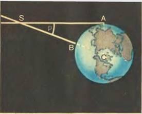 Видимые размеры небесных объектов также можно выразить в уг- ловых единицах. Диаметры Солнца и Луны в угловой мере примерно одинаковы — около 0,5°, а в линейных единицах Солнце боль- ше Луны по диаметру примерно в 400 раз, но оно во столько же раз от Земли дальше. Поэтому их угловые диаметры для нас почти равны.