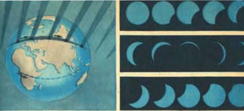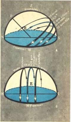 Вторая особенность астрономических наблюдений со- стоит в следующем. Мы наблюдаем положение небесных тел и их движение с Земли, которая сама находится в движении. Поэтому вид неба для земного наблюдателя зависит не только от того, в каком месте Земли он находится, но и от того, в какое время суток и года он наблюдает. Например, когда у нас зимний день, в Южной Америке летняя ночь, и наоборот. Есть звезды, видимые лишь летом или зимой.