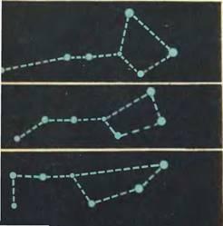 На рисунках 4 и 8 показаны расположение главных звезд Боль- шой Медведицы и фигура этого созвездия, как его изображали на старинных звездных картах (способ нахождения Полярной звезды знаком вам из курса географии).