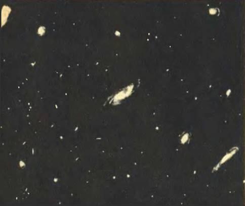 Рис. 9. Фотография околополярной обла- сти неба, снятая неподвижной ка- мерой с экспозицией около часа.