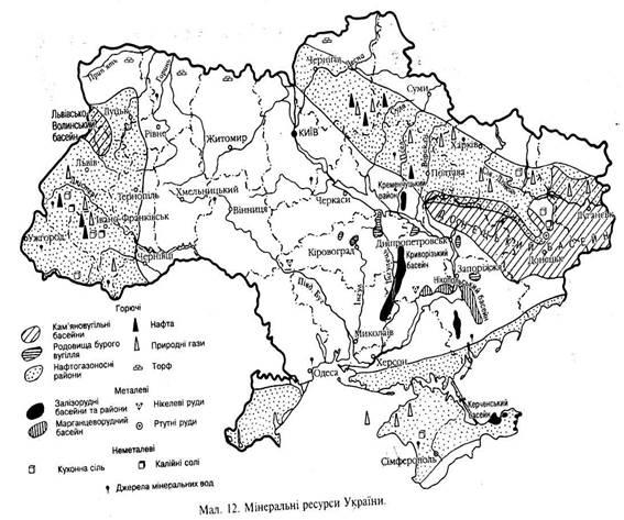 - мінеральні, до яких зараховуються корисні копалини та мінерально-будівельна сировина. Мінеральні можуть підрозділятися на паливні, рудні й нерудні;