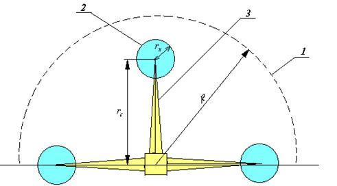 1 – граница опасной зоны; 2 – граница зоны возможного падения груза; 3 – стрела крана