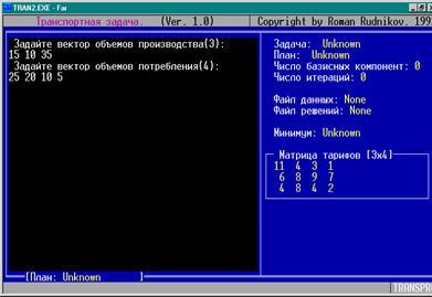 Постановка задачи в виде матрицы системы ограничений