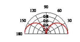 Анализ данной диаграммы направленности показывает, что имеются два направления максимально излучения 0 и 180 градусов в меридиональной плоскости и одно направление минимального излучения в 90 градусов, по всем другим направлениям происходит уменьшение амплитуды до нуля.
