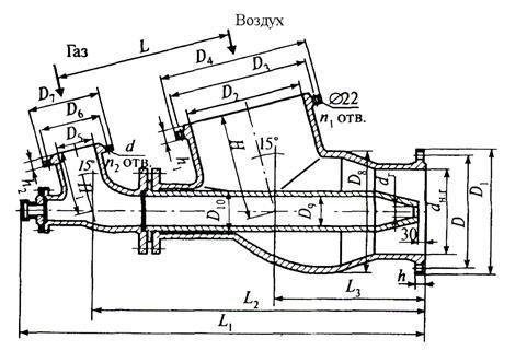 , – температура воздуха и газа соответственно, °С.