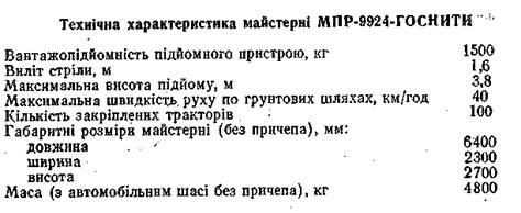 Таблиця 2. Технічні характеристики пересувних майстерень