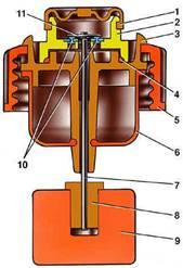Рис. 2. Вакуумный усилитель тормозов автомобилей ваз 2110, ваз 2111, ваз 2112: