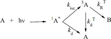 Часто фотохимические реакции протекают из триплетного состояния возбуждённых молекул. Рассмотрим простейшую схему такой реакции, приведённой на рисунке 2.2: