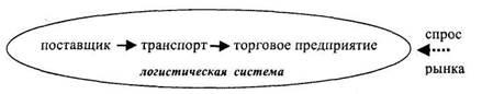Метод быстрого реагирования разработан в результате развития философии "точно в срок" и представляет собой метод планирования и регулирования поставок товаров на предприятия розничной торговли и в распределительные центры, в основе которого лежит логистическое взаимодействие между торговым предприятием, его поставщиками и транспортом. Суть метода раскрыта в его названии: быстрая реакция логистической системы, изображенной на рис. 5, на возникший на рынке спрос. Если поставщиком является производственное предприятие, то оно должно иметь возможность оперативно перестраивать производство на выпуск новых товаров мелкими партиями. Поставщик должен иметь возможность быстрого доступа к информации о реальном спросе, который предъявляет потребителю рынок. Решение о поставке товара на предприятие торговли предприятием-изготовителем принимается тогда, когда достаточно высока вероятность возникновения реальной потребности в товаре данного вида. Передача заказа и поставка товаров должны осуществляться без каких-либо задержек.