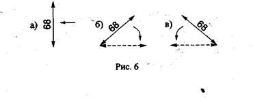 Размерные числа линейных размеров наносят в соответствии с положением размерных линий, как показано на рис. 6. Если размерная линия вертикальная, то размерное число ставят справа (рис. 6а). На наклонных размерных линиях цифры пишут так, чтобы они оказались в удобном для чтения положении, если дать размерной линии "упасть" в горизонтальное положение, как это указано стрелками на рис. 6 а, б, в.