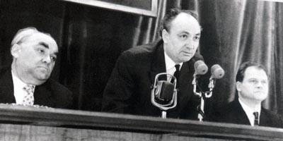 |  В президиуме III съезда композиторов СССР. Москва, 1962 год. Слева направо: К. Ф. Данькевич, Н. Г. Жиганов, Т. Н. Хренников.