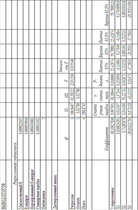 Результати регресійного моделювання тримірної функції залежності Y =F(Х1, Х2,Х3) в «електронних таблицях» Excel-2007