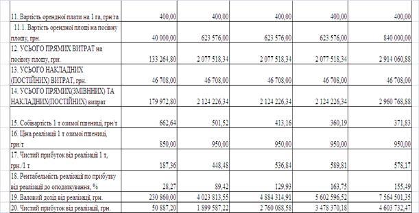 Це приводить до суттєвого рівня (до 20%) перевищення собівартості ви-рощування озимої пшениці в агрофірмі «Відродження» у порівнянні з середнім рівнем по Васильківському району.