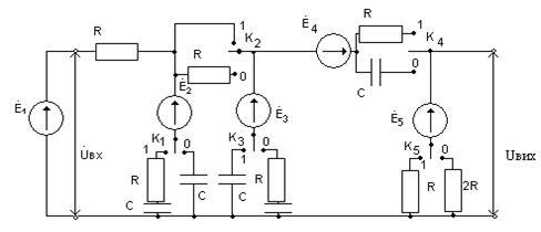 1. Кожному студенту у відповідності з порядковим номером по журналу вибрати варіант схеми по малюнку 1. Різні конфігурації схеми утворяться залежно від положення ключів "К1 - К5 ", які встановлюються по номері варіанта, представленому у двійковому коді. Номера позицій одиниць і нулів у номері варіанта випливають ліворуч праворуч.