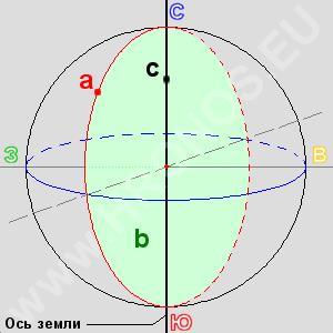 (φ) – вертикальный угол, образованный между плоскостью экватора и нормалью, опущенной из определенной точки (С или Ю) к прямоугольным координатам X или Y.