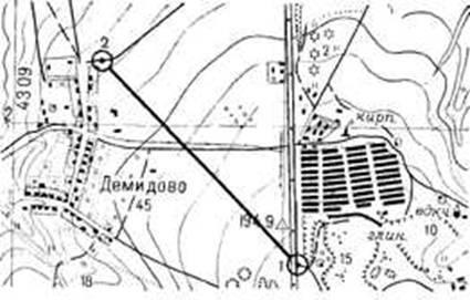 Циркулем измеряют по перпендикуляру расстояние от данного объекта до нижней километровой линии и по масштабу определяют его действительную величину. Затем эту величину в метрах приписывают справа к подписи километровой линии, а при длине отрезка более километра вначале суммируют километры, а затем также приписывают число метров справа. Это будет координата объекта Х (абсцисса).