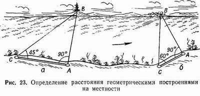 Расстояния по карте определяются с помощью линейного масштаба. Надо измерить циркулем, линейкой или полоской бумаги расстояние между заданными точками на карте, а затем приложить циркуль к линейному масштабу и снять отсчет.