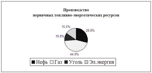 Структура потребления первичных энергоресурсов в мировом хозяйстве выглядит следующим образом: