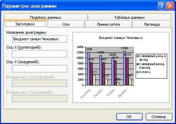 - задаем параметры ( заголовки, подписи, размещение) (рис. 15).