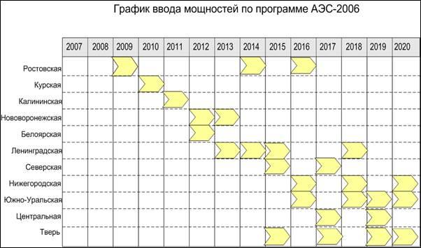 Рисунок 1. График ввода мощностей АЭС по программе АЭС-2006.