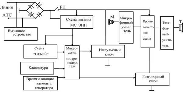 Структурная схема кнопочного телефонного аппарата изображена на рисунке 2. Она содержит следующие блоки: