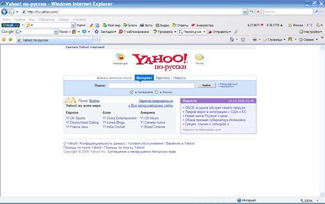 Службы: почта, новости, открытки и закладки, автоматическое объединение новостей в сюжеты и выделение главных тем дня. Плюс, стилизованный под Google Toolbar, спартанский поисковик ya.ru. Поиск теперь ведется не только по веб-страницам, но и по специализированным массивам данных – новостям и товарам. Находит документы не только в формате HTML.