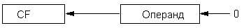 сдвиг осуществляется на число бит, указанное в регистре-счетчике CL, при этом в процессе последовательных сдвигов старшие биты операнда заполняются нулями, а младшие, пройдя через флаг CF, теряются (рис. 3).