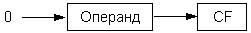 сдвиг осуществляется на 1 бит. Младший бит операнда записывается в его старший разряд и одновременно поступает в флаг CF (рис. 7). Если команда записана в формате