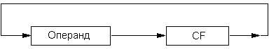 сдвиг осуществляется на число бит, указанное в регистре-счетчике CL, при этом в процессе последовательных сдвигов младшие биты операнда поступают сначала в CF, а оттуда - в старшие биты операнда (рис. 5).
