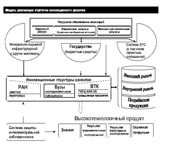 Сегодня необходимо реализовать такую модель стратегии инновационного развития, где все ресурсные возможности (кадровые, финансовые, материально-технические) должны быть сфокусированы на инновационной структуре развития (рис. 1).