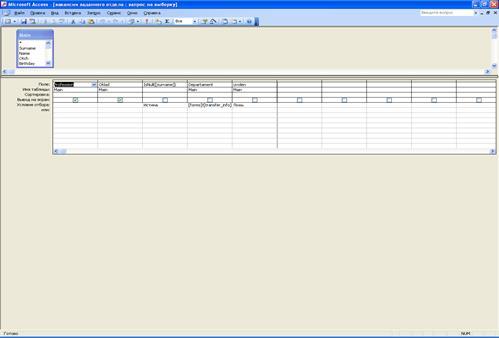 5. Запрос по количеству человек в заданном отделе (рис 4.10).