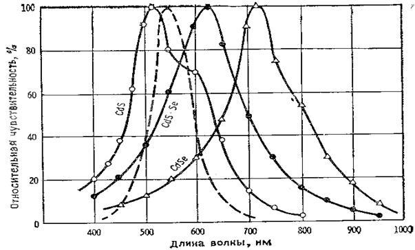 Рисунок 1.3 – Распределение спектральной чувствительности различных фоторезисторов.