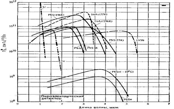 Рисунок 1.4 – Характеристики спектральной чувствительности различных датчиков ИК-излучения.