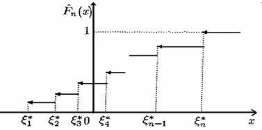 Зауваження 2. Розподіл, що відповідає емпіричній функції розподілу , будемо називати емпіричним. При кожному фіксованому це дискретний розподіл, що ставить у відповідність кожній точці , "масу" (або , якщо з збігаються вибіркових значень, враховуючи й )