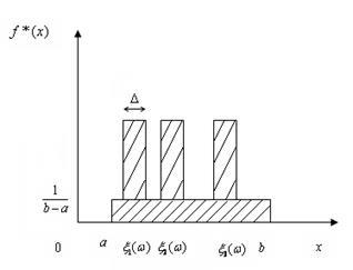 А саме: припишемо кожній реалізації елементарну рівномірну щільність на відрізку :