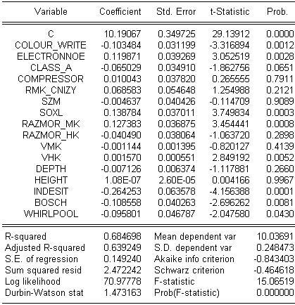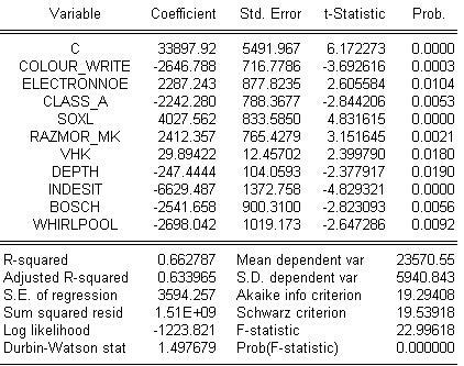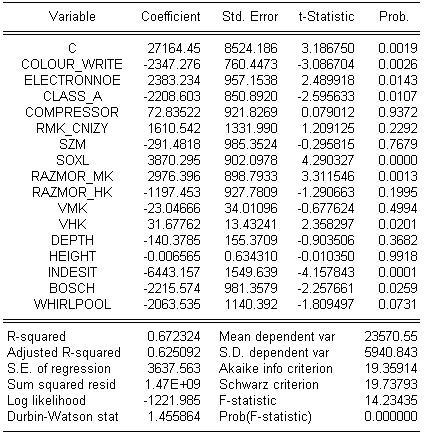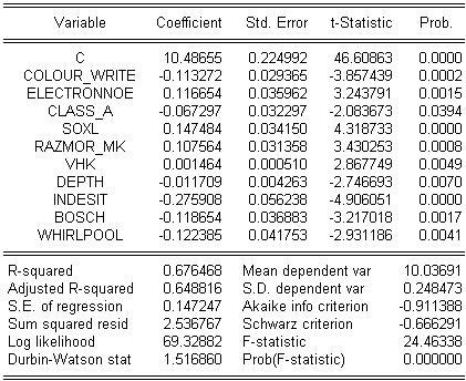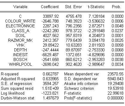 При моделировании, прежде всего будем учитывать, фирму- производитель. В соответствии с этим имеем три фиктивных переменных: