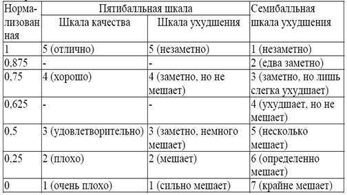 Таблица 2.1 Основные шкалы субъективных оценок качества изображения
