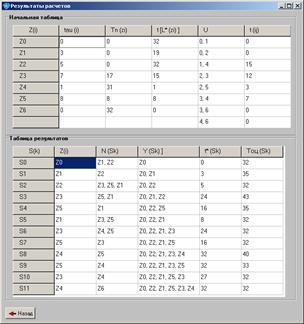 В верхней таблице «Начальная таблица» приведены значения наиболее ранних времен начала модулей Zi
