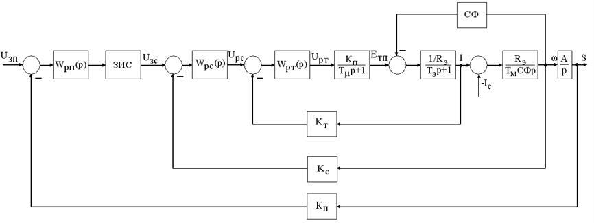 Полная структурная схема системы подчиненного управления приведена на рисунке 1.9, функциональная схема на рисунке 1.10.