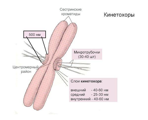 В прометафазе происходит следующее. На центромере каждой из хроматид формируется определенная структура, называемая кинетохор