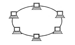 Характеризуется наличием замкнутого канала передачи данных в виде кольца или петли. В этом случае информация передается последовательно между рабочими станциями до тех пор, пока не будет принята получателем и затем удалена из сети. Недостатком подобной топологии является ее чувствительность к повреждению канала.