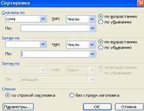 Меню «таблица» сортировка…