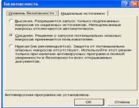 1.4 Встановлення рівня захисту від макровірусів: „Средний”