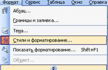 „Формат”- „Стили” – „Форматирование” (создать 3 стиля)
