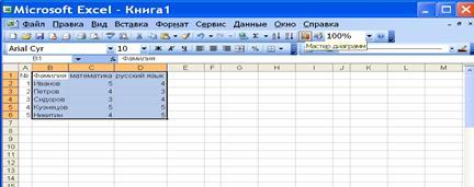2) нажать кнопку Мастер диаграмм